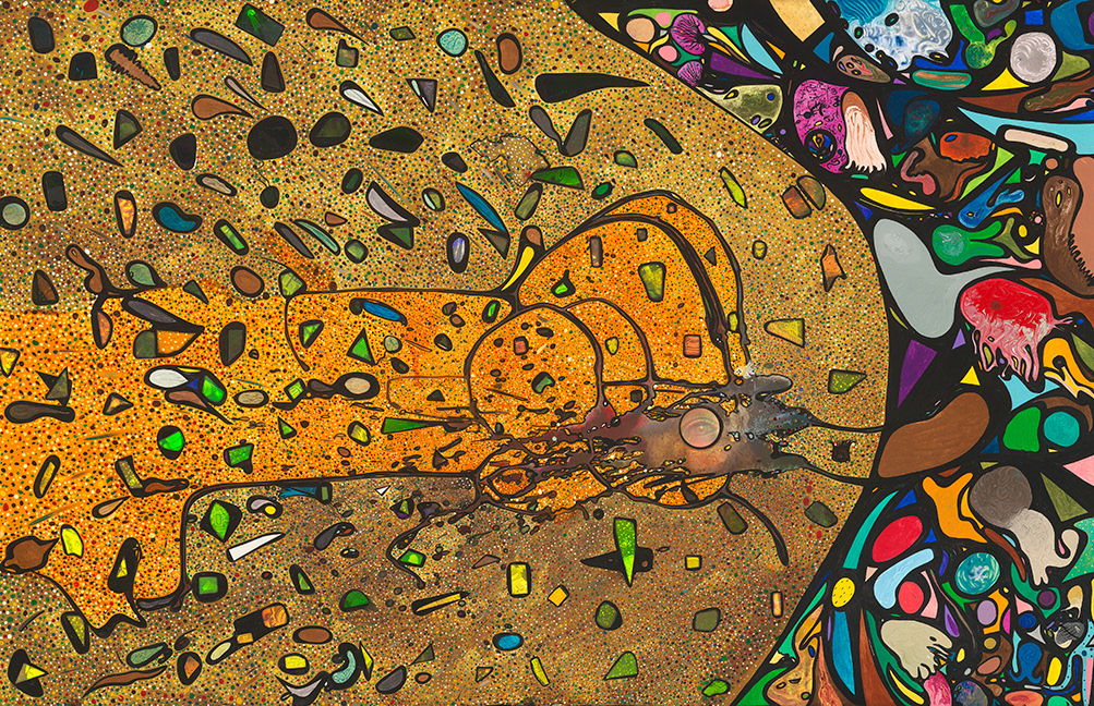 Inside Out Reverse Wave - Acrylic, Watercolor, Object, On Paper 22 x 30 Inches (C) Copyright 2011 Peter Smolenski